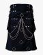 Black Fashion Utility Kilt with Decorated Apron is a stylish and functional garment that adds a contemporary twist to your outfits while expressing your deep love for Scottish traditions. This kilt is attractive due to its rust-free hardware styling. It is available in various fabric colours and sizes, so you can choose the one that suits your taste and personality. Black Fashion Utility Kilt is designed with a decorated front apron with chains and O-rings. It comes with snap buttons at the top front waist to fasten the kilt perfectly. Lobster hooks are connected to each loop so that you can attach lightweight items like keys and chains. It has large pockets on both sides, allowing you to store valuable items like a Cell phone, Wallet, and Keys. It has a traditional pleated design on either side that helps in easy movement and shows your resemblance to the Highlander culture. Four nylon button straps are attached on both corners of the front apron to show a gothic and classy look. Black Fashion Utility Kilt with Decorated Apron is a custom handmade kilt crafted with 100 % pure drill jeans cotton fabric. It is suitable for Casual outings, Scottish and Irish weddings, and Traditional festivals. Order now to purchase this kilt at a reasonable price.