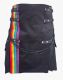 Gothic Black Rainbow Utility Kilt with Chains is an amazing piece of Scottish attire that adds a contemporary twist to your outfits. It is fashionable and available in various colours combinations and sizes, so you can wear it according to your preferences. It is handmade, and we always deliver new products that meet the customer's needs. Gothic Black Rainbow Utility Kilt has features of a stylish black front apron with colourful straps sewn on the front side that gives a unique style and design. Traditional pleated design on the rear, adding a classy twist to its design, and also helps with easy movement. Three nylon button straps are used on both sides of the front apron for fastening the front apron. These straps are connected with side O-rings for a gothic look. It has a snap button on its front waist, providing a better and more comfortable fit for the wearers. It features flap pockets, allowing you to stow valuable items like a cell phone, wallet, and keys. Lobster hooks are connected with both sides for hanging chains on the front apron. Gothic Black Rainbow Utility Kilt with Chains is fabricated with 100 % pure Cotton material, ensuring its longevity and durability. We offer it reasonably priced, so anyone can easily buy it. You can wear it at Formal gatherings, Casual outings, and Special parties. Order now.