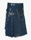 Gothic Blue Denim Utility Kilt with Chains is designed to represent your individuality in a contemporary style. It adds a modern twist to your dress and allows you to celebrate your Scottish pride uniquely. It comes with handmade features, and you can select your favourite colour.