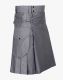 Grey Cargo Utility Kilt is designed in a unique style, which gives a modern look. This kilt is different from others due to its classy and shiny grey colour. The grey kilt has a feature of a plain front apron that is both simple and decent. However, traditional pleats are shaped on the back and sides to allow for effortless movement. It has a utility feature of large flap cargo pockets on both sides, which are used for carrying your valuable items, like keys, cell phones, wallets, etc. Lobster hooks are attached with d-rings on the right side for kilt adjustment. For kilt fastening, snap closures are used on the top front waist to make an accurate fit. Loops are attached with eyelets and a d-ring on the waist area to wear a belt and hang small items like chains and keys. This kilt is fabricated with top-quality cotton fabric, which is durable and washable. You can wear this kilt on weekend events, family functions or other outdoor occasions. We offer this kilt at an affordable price in your demanding sizes and colours. So place your order now and get this kilt at your doorstep.