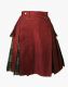 Ladies Maroon and Grey Watch Hybrid Kilt is a unique and functional piece of Scottish attire that offers an attractive and distinctive design to your personality. Its different-colored fabrics capture the attention of people in the crowd and make you fashionable and attractive. You can purchase this kilt in your favorite colors that perfectly match your taste. Ladies Maroon Hybrid Kilt has a classy design of a plain front apron that gives it a decent look. A traditional tartan pleated pattern is made around the back and side, which shows your resemblance to the Highlander culture and also offers freedom of movement during your outdoor activities. Snap buttons are used for kilt fastening and adjustment on the top front waistline area. It comes with a belt loop by which you can wear it for a tighter fit. D-rings are connected to each belt loop for lightweight items like keys and chains. It has large pockets on both sides, allowing wearers to store valuable items like Cell phones, wallets, and cards. Ladies Maroon and Grey Watch Hybrid Kilt is specially fabricated with 100 % pure drill jeans cotton and tartan fabric. It is lightweight, and you can purchase it in your exact size at a fair price. It is suitable for Casual outings, Scottish and Irish Weddings, Music festivals, and other Special occasions. Order it now.