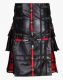 Mens Black Leather with Macgregor Tartan Hybrid Kilt is newly manufactured with blends of modern styles to make your personality more traditional and attractive. It is specially designed to meet the contemporary needs of modern people to make them look fabulous at various events and functions. Black Leather Hybrid kilt has an attractive and decorated front apron with tartan straps attached to the center o-ring. Three nylon button straps are used on both sides of the front apron to fasten the kilt and give it a gothic look. At the same time, tartan pleated panels are designed on either side of the kilt for freedom of movement for the whole day. Flap pocket is styled on both sides for carrying your valuable items. O-rings are attached with nylon straps on either side to give your kilt a charming and stylish look. Men's Black Leather with Macgregor Tartan Hybrid Kilt is fashioned with top-quality pure leather and tartan fabric with rust-free hardware. We deliver new products at a fair price in all fabric combinations according to the customer's needs. The kilt is made of lightweight material that makes it an excellent option for wear to wedding functions, birthday parties, outdoor events, etc. Order this kilt now at your doorstep.