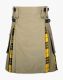 Men's Khaki With Macleod Of Lewis Hybrid Kilt is designed to express your style uniquely. This hybrid kilt has a prominent Khaki fabric with Macleod of Lewis Tartan pleats. Khaki and Macleod Of Lewis Kilt have cargo pockets on both sides for carrying your items. The kilt has belt loops on the waist to hold the belt and make the waist fit. Macleod Of Lewis Hybrid Kilt is fabricated with a quality material with a simple khaki front apron. It has a pleated design on its rear, which provides a traditional and elegant design. It has adjustable leather straps with snap buttons for kilt closure. D-rings connected to the belt loops to hang keys or any light during your office, playing games, or other activities.