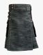 Modern Black Denim Kilt with Leather Straps