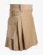 Modern Khaki Utility Kilt is an incredible garment for those who want their personality to be more classy and unique. It is an ideal option to look good and make their events and functions memorable. We offer this kilt in various colors and sizes, so you can select the one that is accurately perfect for your wardrobe. Men's Khaki Kilt features a simple and decent plain flat front apron with snap buttons on the top of the front waistline. Flap pockets are made on either side of a kilt, providing enough storage for your valuable items like a Cell phone, Wallet, and Keys. It has a pleated design on the back that expresses Scottish traditions and allows you to move easily for the whole day. Khaki buckle straps with eyelets are styled on either side for kilt adjustment to make an accurate fit. This kilt is available cheaply at your home place in time. Modern Khaki Utility Kilt is specially fabricated with 100% high-quality Cotton fabric, which is durable and washable. All the hardware material used is rust-free. Order now to wear this kilt on various occasions, such as Casual parties, Formal events, and Family gatherings.