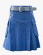 Royal Blue Utility Kilt is a modern Scottish garment, perfect for outdoor adventures. It combines the blend of classic design elements with current fashion trends. It is designed for people who want a stylish look with comfort. Men's Royal Blue Kilt features a smooth front apron with a pleated design on its rear. On the waistline, it has buttons to tighten the kilt securely. D-rings are connected with each belt loop for external attachments. The lobster clasp is attached to the front apron and used for close fitting with the help of D-rings. It comes with spacious pockets that are necessary for your everyday essentials.