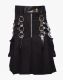 Stylish Black Utility Kilt with Zip Closure is a versatile garment that adds a modern twist to your outfits to make your look distinctive and fashionable. The addition of leather straps adds a royal twist to its design, making it the more stylish and the perfect choice for modern individuals. We offer this kilt in various sizes and colours, so anyone can purchase it according to their preferences. Stylish Black Utility Kilt features a pleated pattern all around the kilt, giving it a unique design that captures the attention of people around the world. It has three leather straps, and O-rings are connected to its front for an attractive design. It has a zip closure at its middle front, allowing you to have a perfect and comfortable fit throughout the whole day's wear. Flap pockets are sewn on both sides of a kilt, providing extra storage for your valuable items like a Cell phone, Wallet, and Keys. Stylish Black Kilt with Zip Closure is manufactured with pure quality Cotton. All the hardware used during its fabrication is rust-free and of good quality. It can be worn at Formal gatherings, Casual outings, and Special parties. Order now to get this kilt at your doorstep in a few days in your favourite colour and exact size at an excellent price.