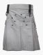 Stylish Grey Utility Kilt with Decorated Apron is a perfect combination of modern style and functional elements which meets the contemporary needs of a fashionable person. It is also a perfect choice to honour Scottish traditions in a modern way. We offer this kilt in various colour options, so you can purchase it in your desired colour. Stylish Grey Kilt has a plain apron while rust-free studs are decorated in an amazing pattern that looks attractive and adds elegance to its design. To fasten the kilt perfectly, snap buttons are styled at the front waistline. It comes with belt loops that are made on nylon. D-rings and nickel hooks are connected to the belt loops for attaching chains and other lightweight items like keys. It has flap pockets on either side of a kilt, providing enough storage for your everyday essentials like a Cell phone, Wallet, and Keys. It has a pleated rear that helps in easy movement and also highlights your connection to Scottish historical culture. Grey Utility Kilt with Decorated Apron is fabricated with top-quality Cotton that assures its durability and longevity. It is handmade and you will get a new kilt that satisfies your specifications. It is suitable to wear at Casual outings, Formal gatherings, and Parties. Order now to get this kilt on your doorstep in a few days.